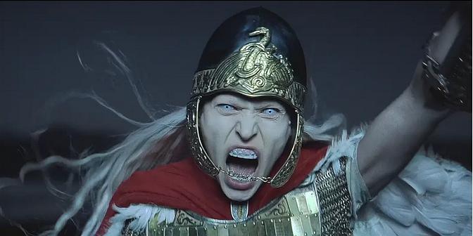 在男主角在儿童时候用很蠢的反击,逃脱追杀后。他成年后以一种恶毒的、一体式的嗜血舞蹈华丽的方式上演攻城,全片通过镜头追踪主角,让他穿过村庄,小伙子将剑砸向任何人,遇人杀人遇佛杀佛,砍胳膊剁腿,炫耀了荒莽暴力,瞎搞血腥!
