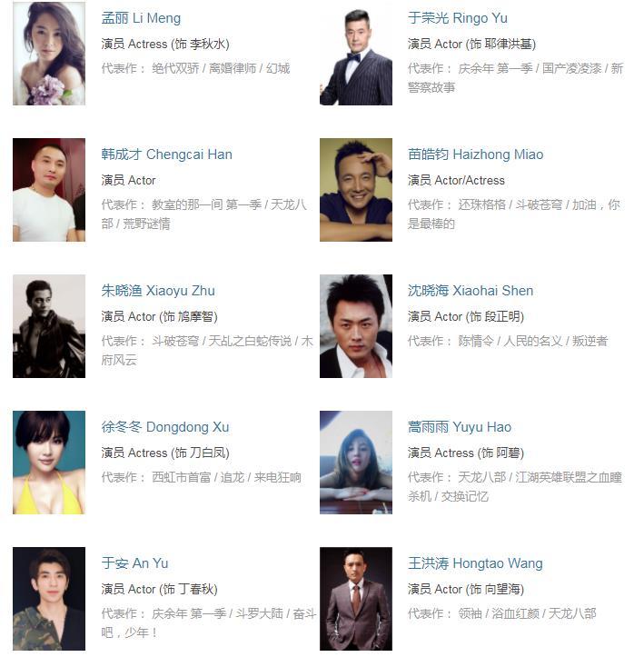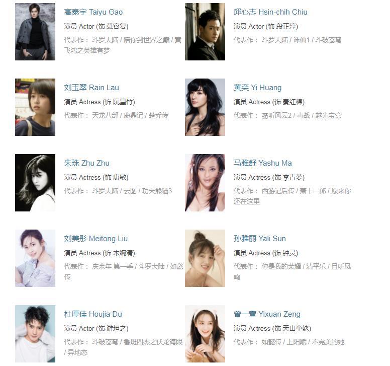 附上《天龙八部》的演员表,大家可以参考一下。